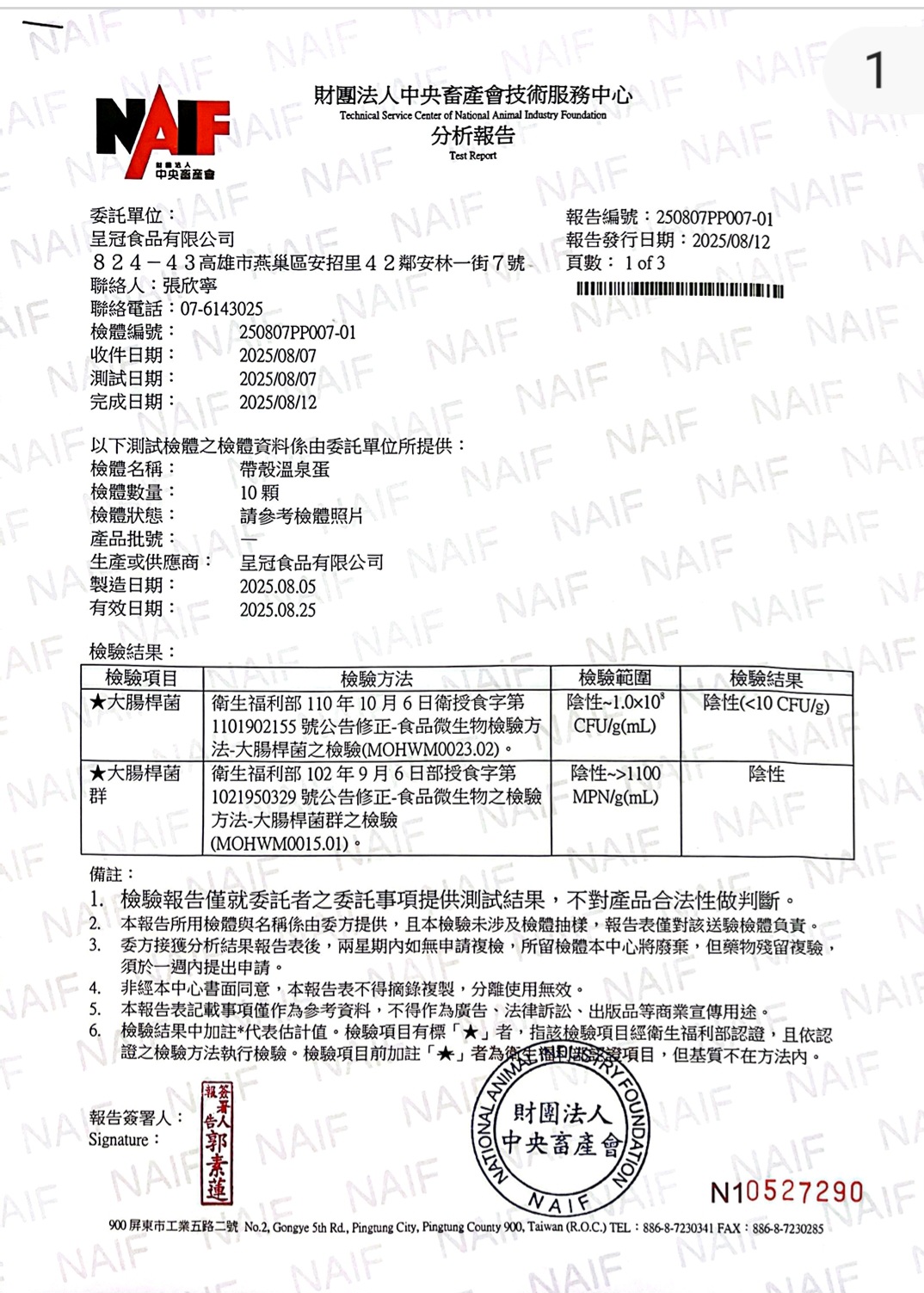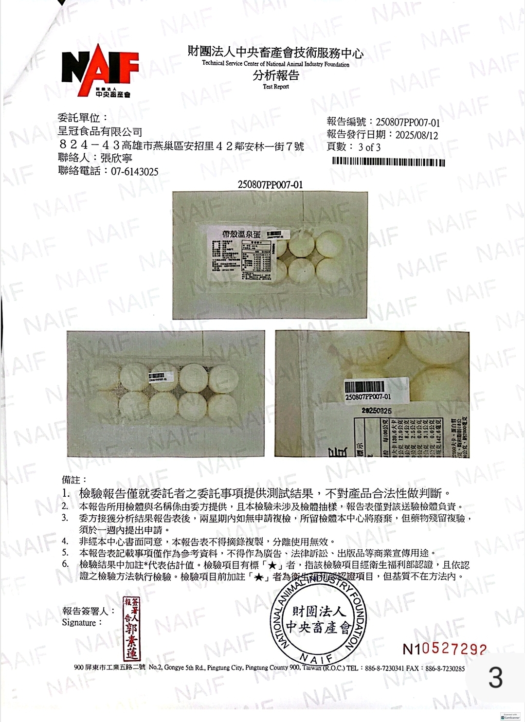 帶殼溫泉蛋外檢報告2025 08
